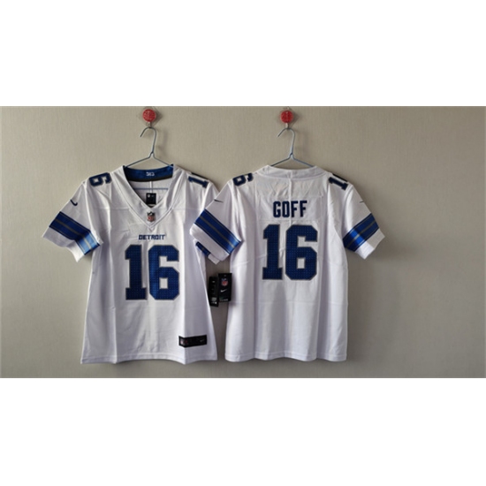 >Women's Detroit Lions #16 Jared Goff White Vapor Football Stitched Jersey(Run Smaller)