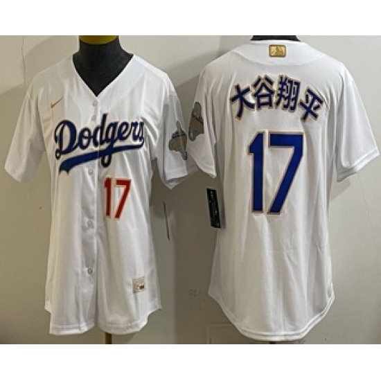 Women's Los Angeles Dodgers #17 大谷翔平 White Japanese 2026 Gold Collection Limited Jersey
