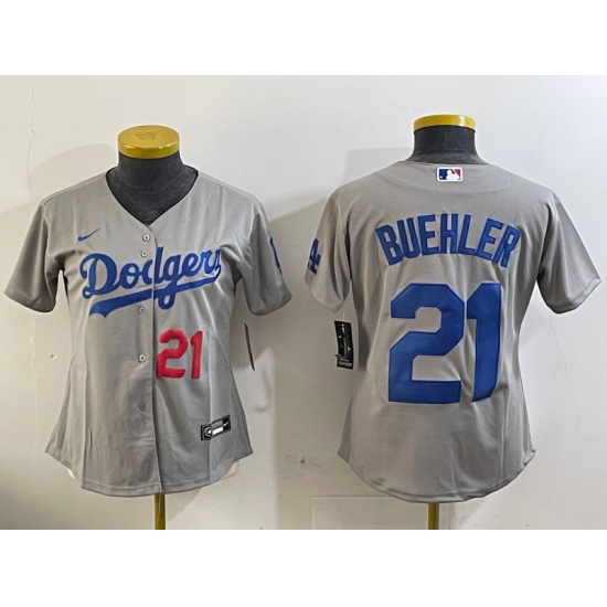 Women's Los Angeles Dodgers #21 Walker Buehler Number Grey Stitched Cool Base Nike Jersey