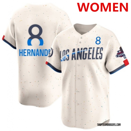 >Women's Los Angeles Dodgers #8 Enrique Hernández Cream 2024 World Series Champions City Connect Limited Stitched Baseball Jersey