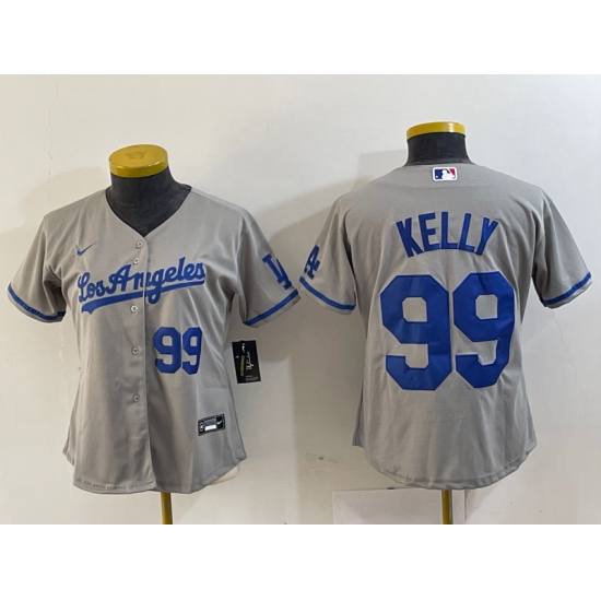 Women's Los Angeles Dodgers #99 Joe Kelly Number Grey With Los Stitched Cool Base Nike Jersey