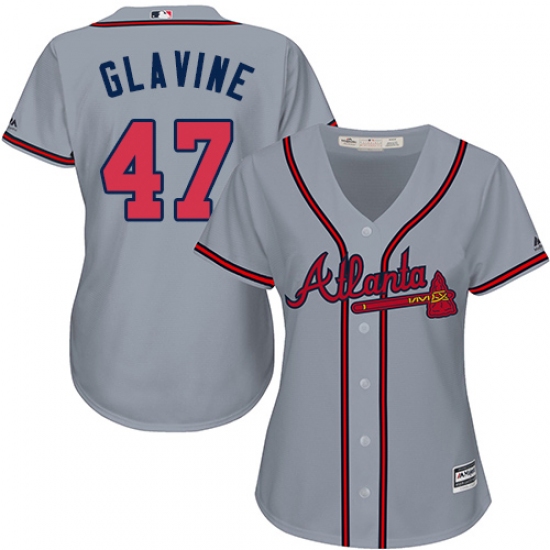 Women's Majestic Atlanta Braves #47 Tom Glavine Authentic Grey Road Cool Base MLB Jersey