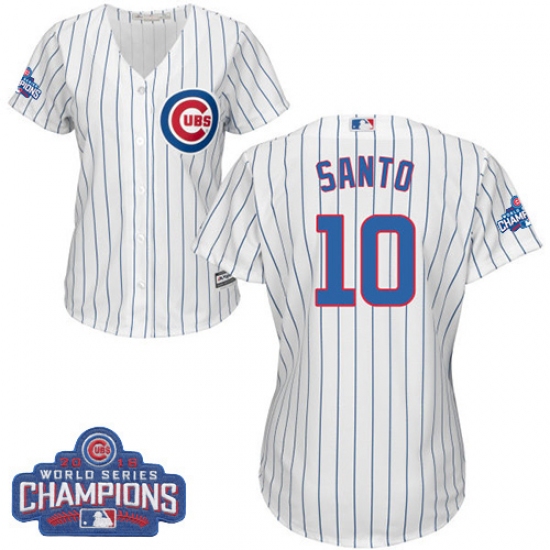 Home>MLB>Chicago Cubs>Ron Santo>Women's Majestic Chicago Cubs #10 Ron Santo Authentic White Home 2016 World Series Champions Cool Base MLB Jersey