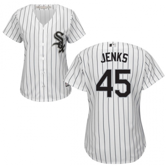 Home>MLB>Chicago White Sox>Bobby Jenks>Women's Majestic Chicago White Sox #45 Bobby Jenks Authentic White Home Cool Base MLB Jersey