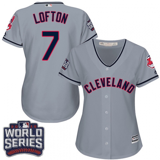 Home>MLB>Cleveland Indians>Kenny Lofton>Women's Majestic Cleveland Indians #7 Kenny Lofton Authentic Grey Road 2016 World Series Bound Cool Base MLB Jersey