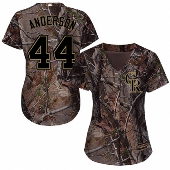 >Women's Majestic Colorado Rockies #44 Tyler Anderson Authentic Camo Realtree Collection Flex Base MLB Jersey
