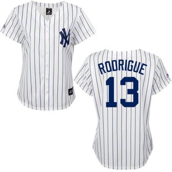 Women's Majestic New York Yankees #13 Alex Rodriguez Replica White/Black Strip MLB Jersey
