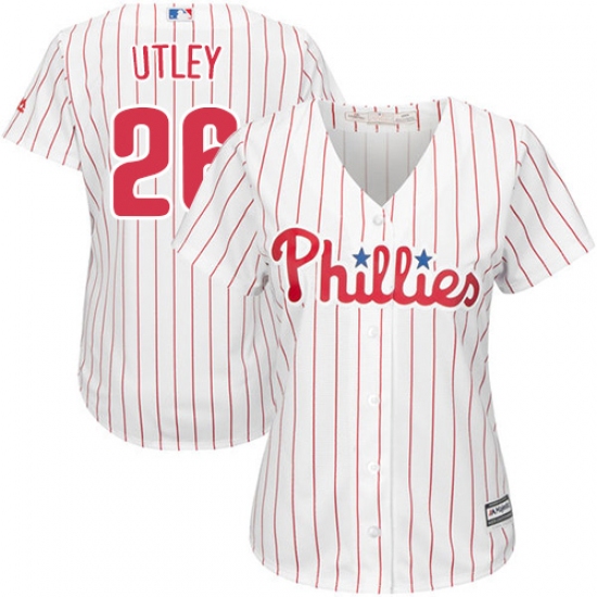 Women's Majestic Philadelphia Phillies #26 Chase Utley Replica White/Red Strip Home Cool Base MLB Jersey