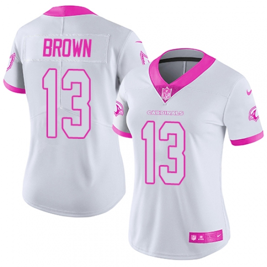 Home>NFL>Arizona Cardinals>Jaron Brown>Women's Nike Arizona Cardinals #13 Jaron Brown Limited White/Pink Rush Fashion NFL Jersey