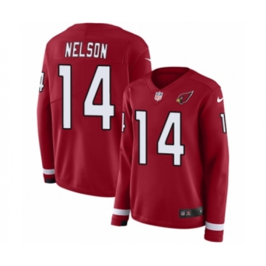 >Women's Nike Arizona Cardinals #14 J.J. Nelson Limited Red Therma Long Sleeve NFL Jersey