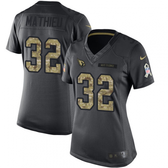 Home>NFL>Arizona Cardinals>Tyrann Mathieu>Women's Nike Arizona Cardinals #32 Tyrann Mathieu Limited Black 2016 Salute to Service NFL Jersey