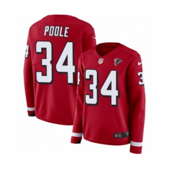 Women's Nike Atlanta Falcons #34 Brian Poole Limited Red Therma Long Sleeve NFL Jersey