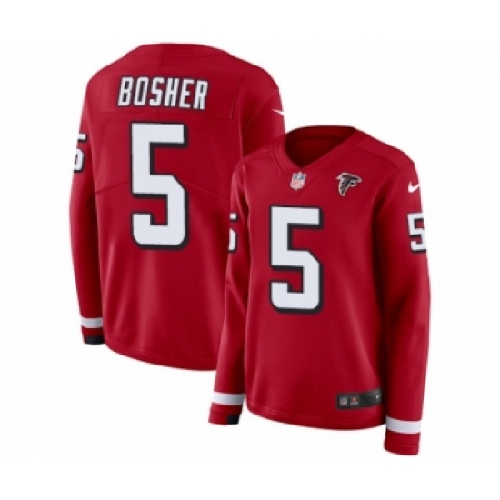 >Women's Nike Atlanta Falcons #5 Matt Bosher Limited Red Therma Long Sleeve NFL Jersey