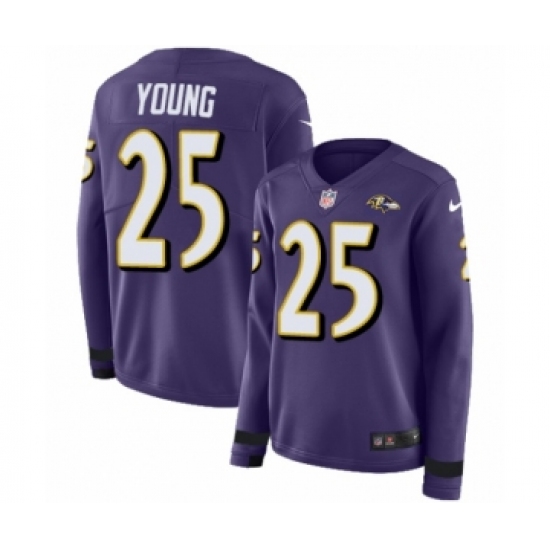 >Women's Nike Baltimore Ravens #25 Tavon Young Limited Purple Therma Long Sleeve NFL Jersey
