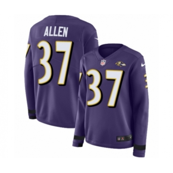 Women's Nike Baltimore Ravens #37 Javorius Allen Limited Purple Therma Long Sleeve NFL Jersey