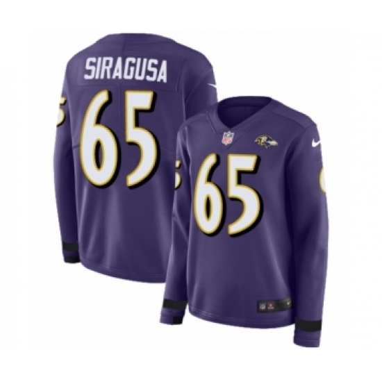 >Women's Nike Baltimore Ravens #65 Nico Siragusa Limited Purple Therma Long Sleeve NFL Jersey