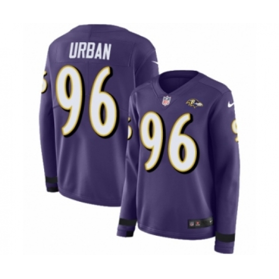 >Women's Nike Baltimore Ravens #96 Brent Urban Limited Purple Therma Long Sleeve NFL Jersey