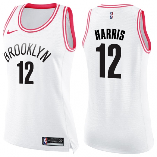 Women's Nike Brooklyn Nets #12 Joe Harris Swingman White Pink Fashion NBA Jersey