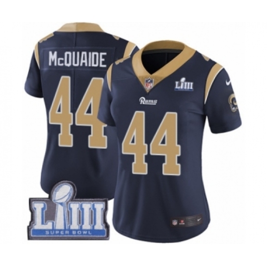 Women's Nike Los Angeles Rams #44 Jacob McQuaide Navy Blue Team Color Vapor Untouchable Limited Player Super Bowl LIII Bound NFL Jersey