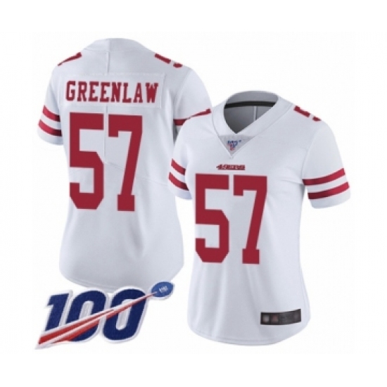 Women's San Francisco 49ers #57 Dre Greenlaw White Vapor Untouchable Limited Player 100th Season Football Jersey