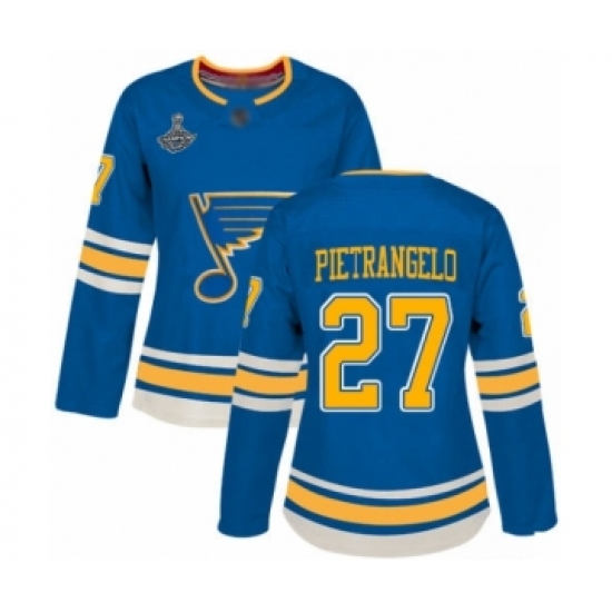 Women's St. Louis Blues #27 Alex Pietrangelo Authentic Navy Blue Alternate 2019 Stanley Cup Champions Hockey Jersey