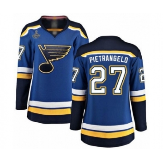 >Women's St. Louis Blues #27 Alex Pietrangelo Fanatics Branded Royal Blue Home Breakaway 2019 Stanley Cup Champions Hockey Jersey