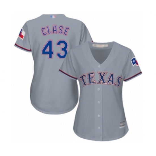 >Women's Texas Rangers #43 Emmanuel Clase Authentic Grey Road Cool Base Baseball Player Jersey