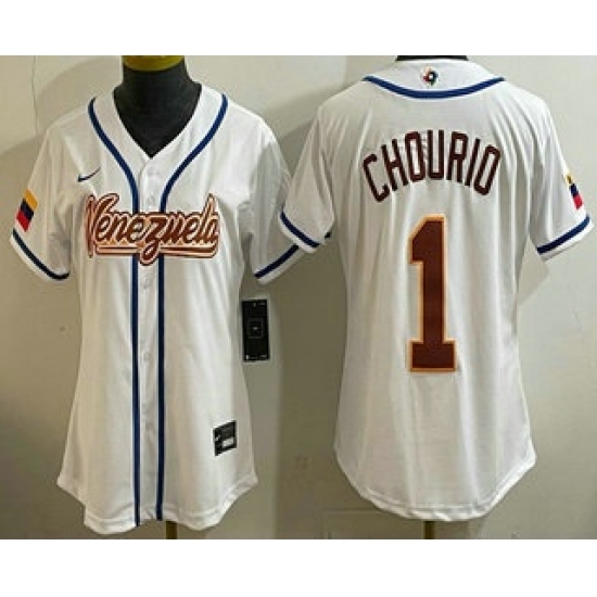 Women's Venezuela #1 Jackson Chourio White 2026 World Baseball Classic Cool Base Jersey