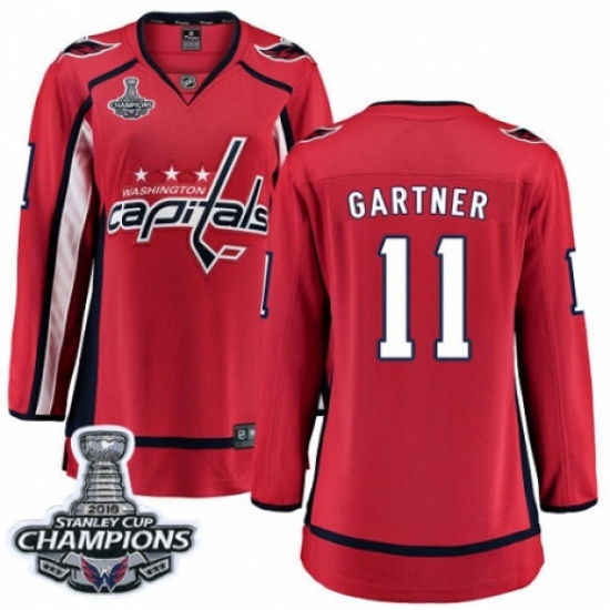 Women's Washington Capitals #11 Mike Gartner Fanatics Branded Red Home Breakaway 2018 Stanley Cup Final Champions NHL Jersey