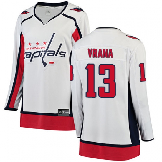 Home>NHL>Washington Capitals>Jakub Vrana>Women's Washington Capitals #13 Jakub Vrana Fanatics Branded White Away Breakaway NHL Jersey