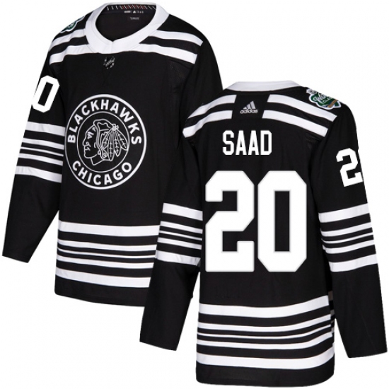 >Youth Adidas Chicago Blackhawks #20 Brandon Saad Authentic Black 2019 Winter Classic NHL Jersey