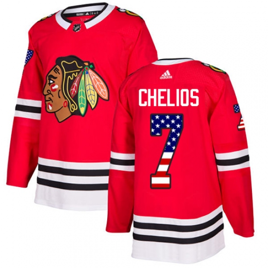 Home>NHL>Chicago Blackhawks>Chris Chelios>Youth Adidas Chicago Blackhawks #7 Chris Chelios Authentic Red USA Flag Fashion NHL Jersey