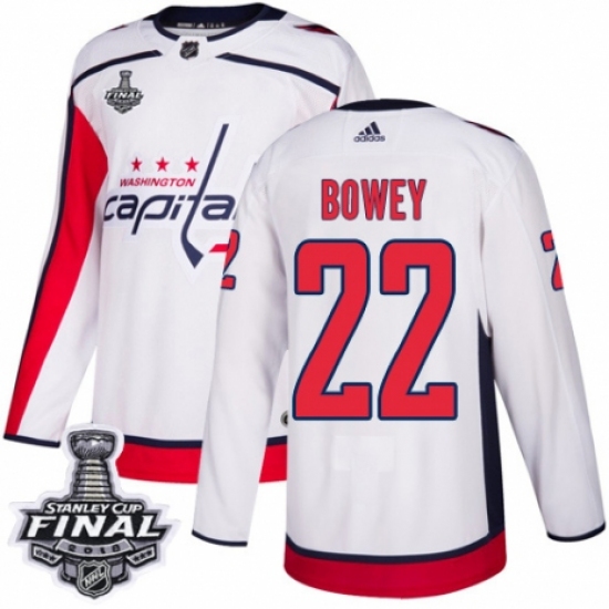 Women's Adidas Washington Capitals #22 Madison Bowey Authentic White Away 2018 Stanley Cup Final NHL Jersey