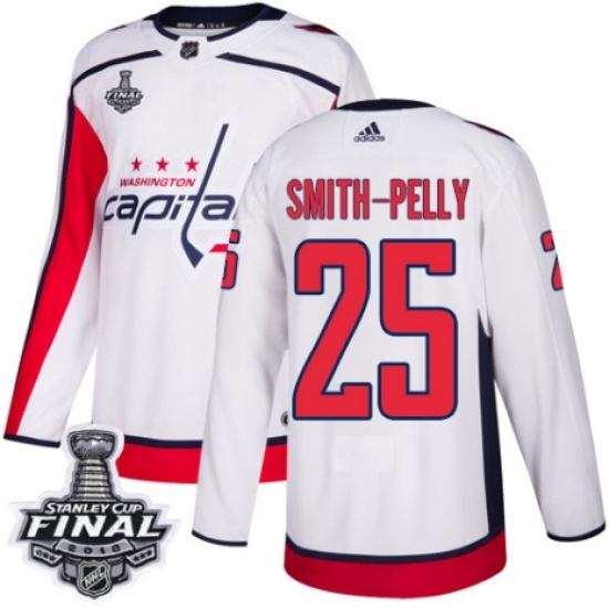 Youth Adidas Washington Capitals #25 Devante Smith-Pelly Authentic White Away 2018 Stanley Cup Final NHL Jersey