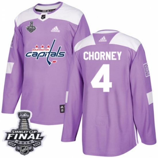 >Youth Adidas Washington Capitals #4 Taylor Chorney Authentic Purple Fights Cancer Practice 2018 Stanley Cup Final NHL Jersey