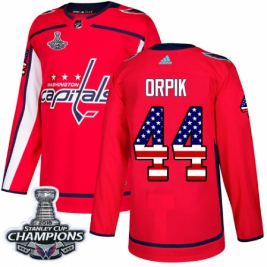 Youth Adidas Washington Capitals #44 Brooks Orpik Authentic Red USA Flag Fashion 2018 Stanley Cup Final Champions NHL Jersey
