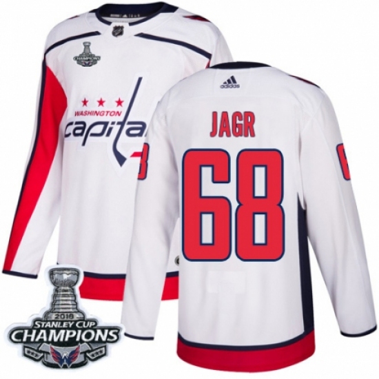 Women's Adidas Washington Capitals #68 Jaromir Jagr Authentic White Away 2018 Stanley Cup Final Champions NHL Jersey
