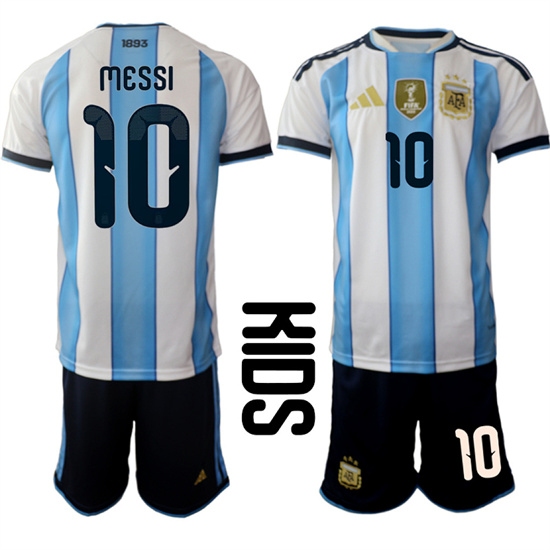 Men's Argentina #10 Lionel Messi White Blue 2025 Home Soccer Jersey Suit