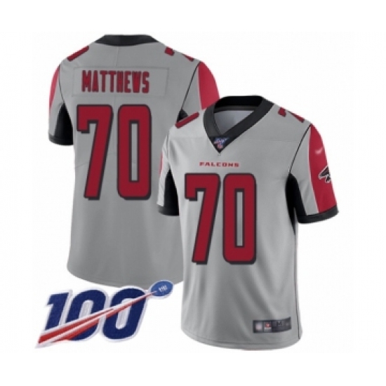 Men's Atlanta Falcons #70 Jake Matthews Limited Silver Inverted Legend 100th Season Football Jersey