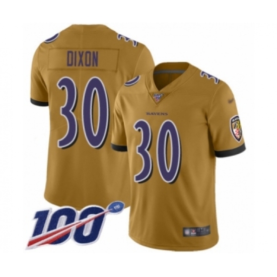 >Youth Baltimore Ravens #30 Kenneth Dixon Limited Gold Inverted Legend 100th Season Football Jersey