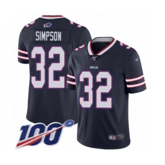 >Youth Buffalo Bills #32 O. J. Simpson Limited Navy Blue Inverted Legend 100th Season Football Jersey
