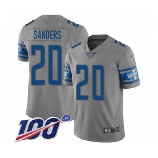 >Youth Detroit Lions #20 Barry Sanders Limited Gray Inverted Legend 100th Season Football Jersey