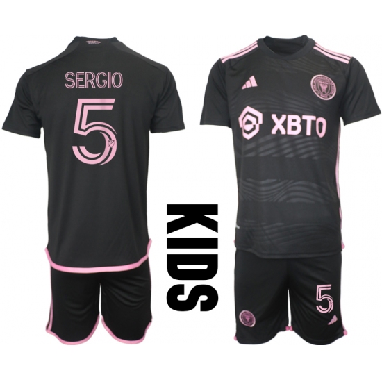 Youth Inter Miami CF #5 Sergio Black Away Soccer Jersey