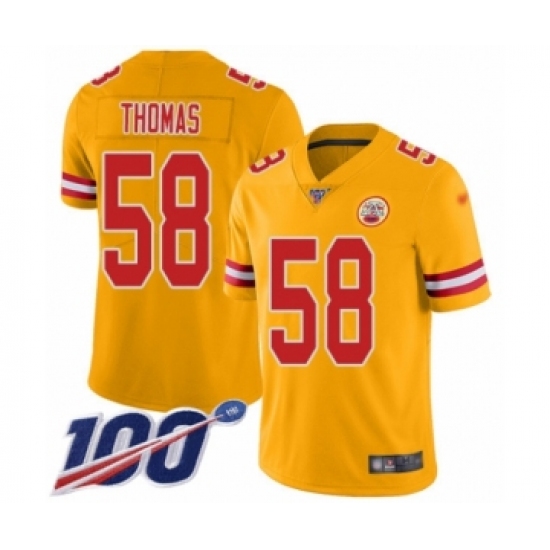 >Youth Kansas City Chiefs #58 Derrick Thomas Limited Gold Inverted Legend 100th Season Football Jersey