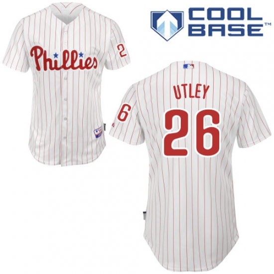 Home>MLB>Philadelphia Phillies>Chase Utley>Youth Majestic Philadelphia Phillies #26 Chase Utley Replica White/Red Strip Home Cool Base MLB Jersey