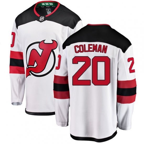 >Youth New Jersey Devils #20 Blake Coleman Fanatics Branded White Away Breakaway NHL Jersey