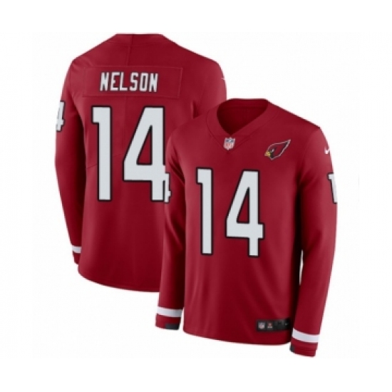 Youth Nike Arizona Cardinals #14 J.J. Nelson Limited Red Therma Long Sleeve NFL Jersey