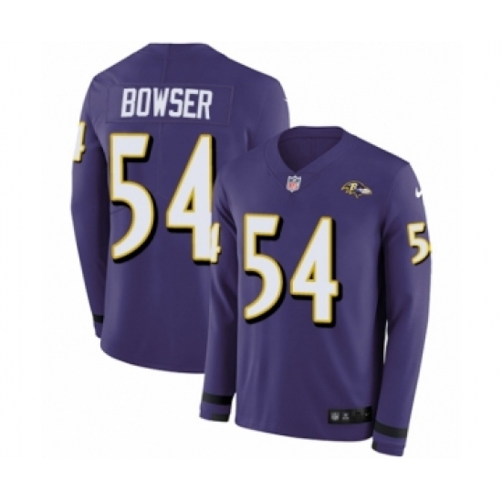 >Youth Nike Baltimore Ravens #54 Tyus Bowser Limited Purple Therma Long Sleeve NFL Jersey