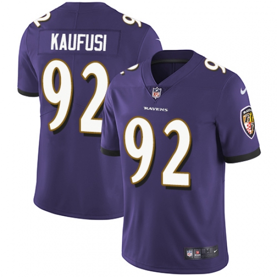Youth Nike Baltimore Ravens #92 Bronson Kaufusi Purple Team Color Vapor Untouchable Limited Player NFL Jersey