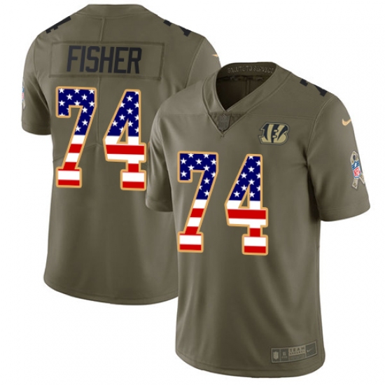Home>NFL>Cincinnati Bengals>Jake Fisher>Youth Nike Cincinnati Bengals #74 Jake Fisher Limited Olive/USA Flag 2017 Salute to Service NFL Jersey